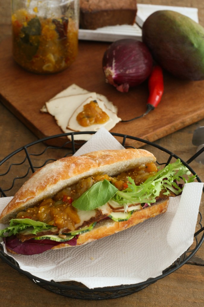 O chutney é uma compota maravilhosa para acompanhar cogumelos portobello grelhados, para servir como canapé sobre torradinhas, para rechear seitan ao forno, como acompanhamento de saladas fortes – como agrião e rúcula,  e, claro, para acompanhar uma boa tábua de frios! Esse queijo veg tipo gorgonzola fica simplesmente um absurdo, com um belo vinho branco.